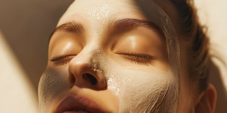 Woman Relaxing with a Beige Hydrating Face Mask