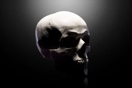 ฺBanner background of human skull. The anatomical of the human skull showed teeth and skeletons. Feel the isolated, dark, dead face, horror and spooky concept.