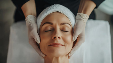 A skilled professional gives a relaxing facial treatment to a woman in a serene spa environment during the afternoon