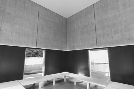 A spacious atrium is characterized by clean lines and minimal decor is highlighted. The high ceilings and smooth walls create a serene atmosphere ideal for reflection and contemplation.