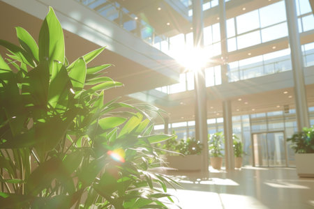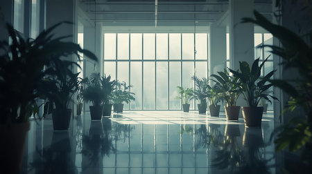 Modern indoor space featuring plants and natural light in a contemporary building