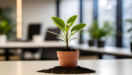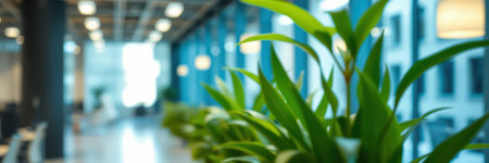 Green Plant Adds Life to Blurred Modern Office Setting with Natural Light, Banner Image