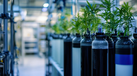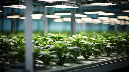 Cannabis plants growing in hydroponic system in modern laboratory