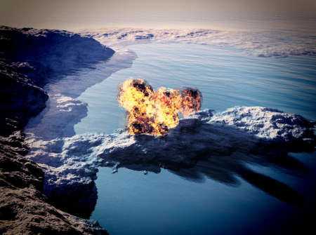 Nuclear war concept. Explosion of nuclear bomb. Creative artwork decoration in dark. Selective focus