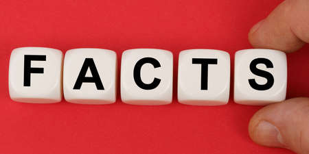 business and finance. On the red surface, white cubes with the inscription - FACTS