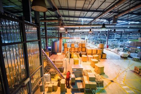 Interior of a modern industrial factory. Factory production line. Industrial background