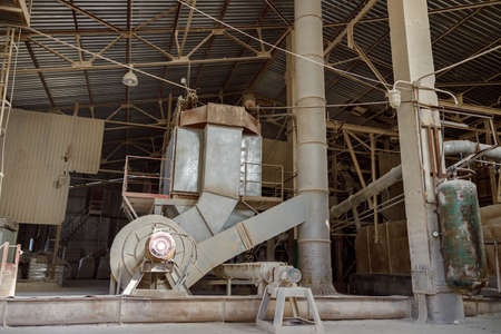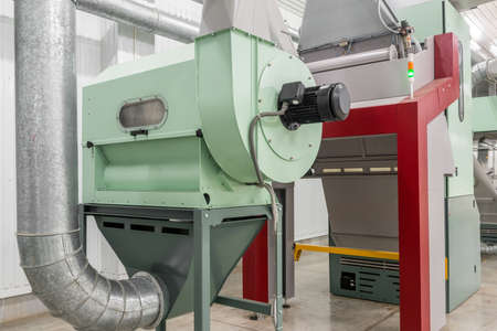 in the workshop machines for processing and manufacturing of plastic granules. a factory for processing plastic granules. PET