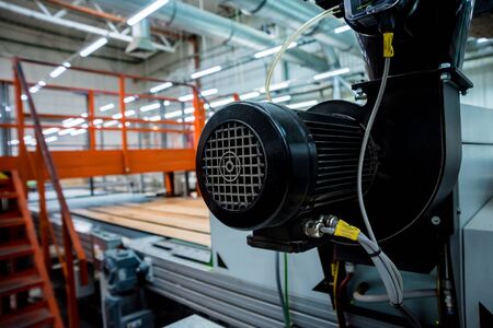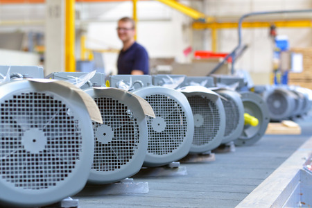 mechanical engineering: closeup of electric motors in production in a modern factory