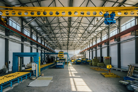 Metalworking factory production line. Interior of the worksop.