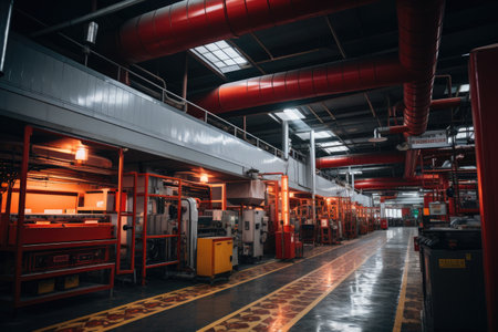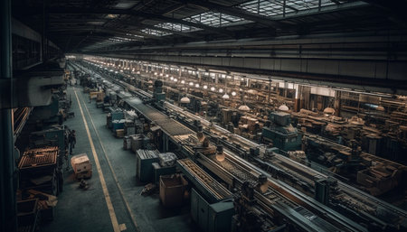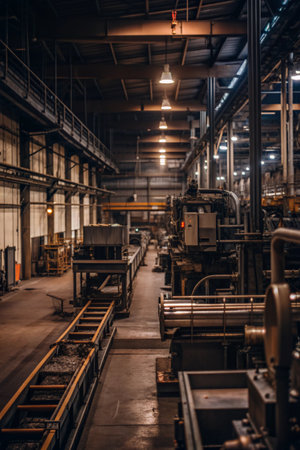 Metal industry machinery working inside factory transportation equipment manufacturing generated by artificial intelligence