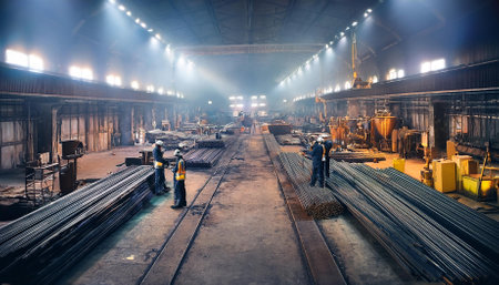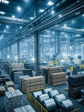 Modern steel factory uses automated machinery and robotics generated by artificial intelligence