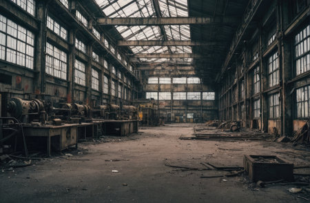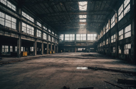 empty abandoned 1980 factory with Generative AI.
