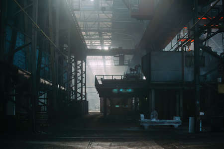 Large dark gloomy and creepy interior of steel plant.