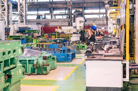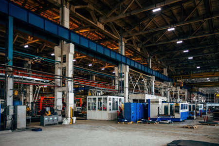 Metalworking factory production line. Interior of the worksop.