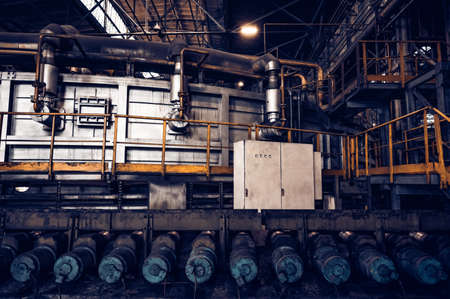 Interior of steel factory, metallurgical or metalworking industry, industrial manufacturing of production on mill