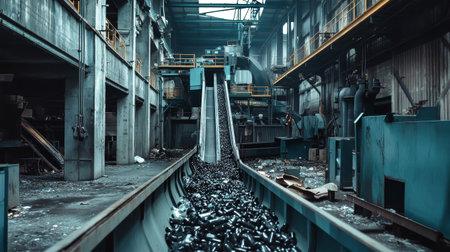 Advanced machinery in a modern recycling facility processes recyclable materials under bright industrial lighting, symbolizing sustainability.