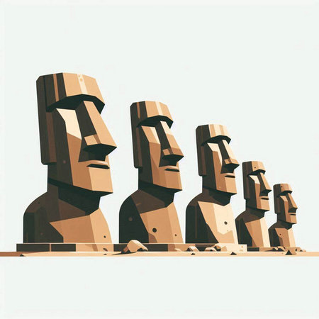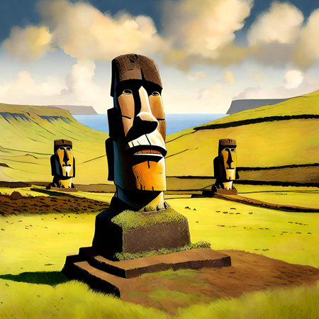 Enhancing Polynesia's Mysterious Allure: Enigmatic Stone Statues and Vibrant Sunsets. Concept Tropical Paradise, Enigmatic Stone Statues, Vibrant Sunsets, Polynesian Culture, Mysterious Allure