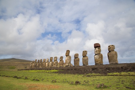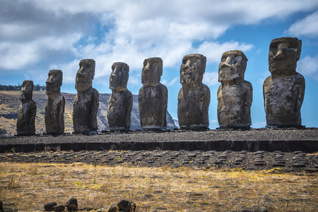 Ahu Tongariki on Easter Island or Rapa Nui. Fifteen Moai statues in Polynesian Chile