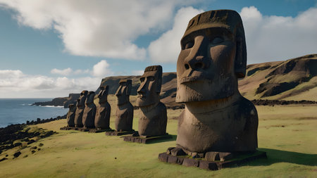 Moai statues at Ahu Tongariki, Easter Island's ancient heritage.