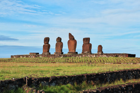 Moais in Ahu Vai Uri, Tahai Archaeological Complex, Rapa Nui National Park, Easter Island, Chile.