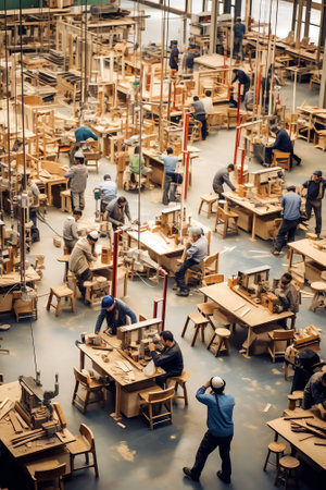 Dedicated workers skillfully operating heavy machinery in a dynamic and bustling factory environment