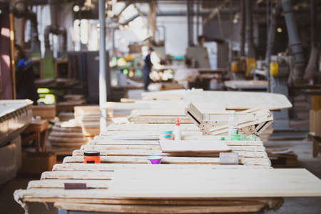 Woodworking industry. Furniture workshop. Wooden blanks on a furniture backwash. A workshop for the production of wooden products.