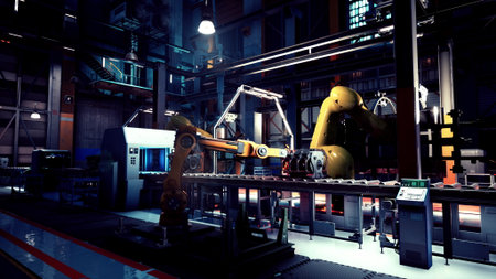 An interior shot of a factory with automated machines