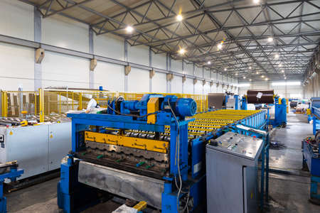 Roller forming machine. The interior of the plant producing a metal profile.