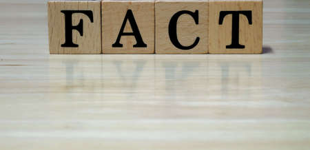 wooden block FACT. rumor News, false, myth, evidence and disinformation concepts