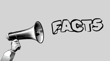 Facts text words description on the background of a megaphone