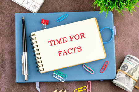 Business and TIME FOR FACTS concept. Copy space. TIME FOR FACTS word symbol in the businessman's notebook