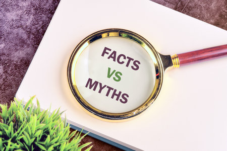 Conceptual symbol. Copy space. Facts vs myths words written through a magnifying glass on a blank sheet of notepad