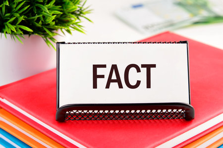 Business concept. FACT word on a business card standing in a stand on a notepad