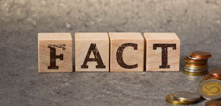 inscription fact on wooden cubes on a gray background