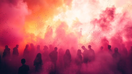 People gather to celebrate Holi, throwing vibrant colors and sharing joy in a festive atmosphere