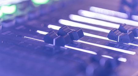 Sound mixer control panel, close-up of audio controls