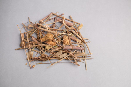 Botanical Macro Image of Dried Flower Heads (Hypericum perforatum) Used as a Natural Mood Enhancer Supplement.
