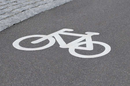 Separate bicycle lane for riding bicycles. A white bicycle symbol on the road. Selective focus