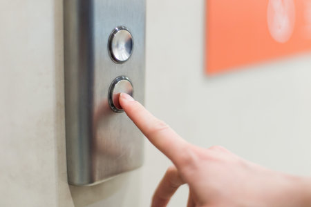Pressing the elevator button in contemporary high rise buildings signifies modern urban convenience