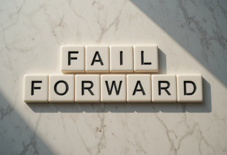 A motivational image featuring the phrase Fail Forward set against a minimalist marble background. This inspiring visual encourages embracing failure as a stepping stone to achieve success and personal growth.