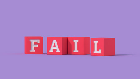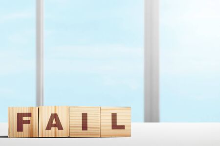 Stacked wooden cube with the fail letter on the table