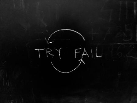 Try and Fail Iteration Handwritten on Blackboard stock photo as JPG File