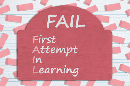 Fail first attempt in learning sign on pink eraser on ruled paper