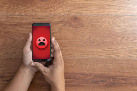 Depressive emotions concept, smiley face emoticon printed depression and sad pessimistic face sadness