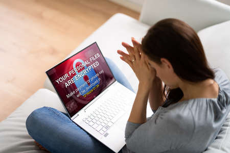 Close-up Of A Person Looking At Laptop Screen Showing Personal Files Encrypted Text