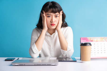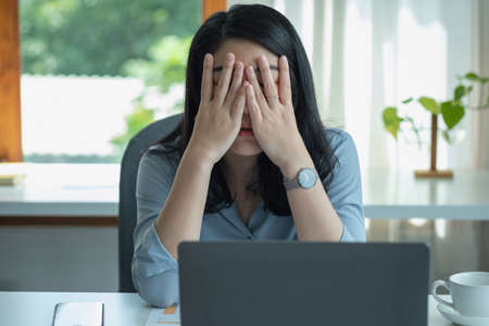 Concept Burnout Syndrome. Business Woman feels uncomfortable working. Which is caused by stress, accumulated from unsuccessful work And less resting body. Consult a specialist psychiatrist.