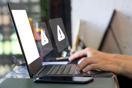 Cyber security or personal data protection concept with digital red glowing failed sign in virtual glowing frame on modern laptop background, double exposure