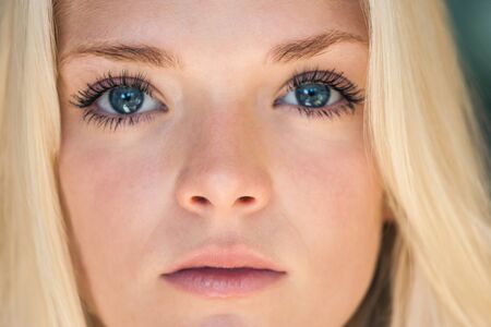 Portrait of a beautiful young woman with blond hair and blue eyes