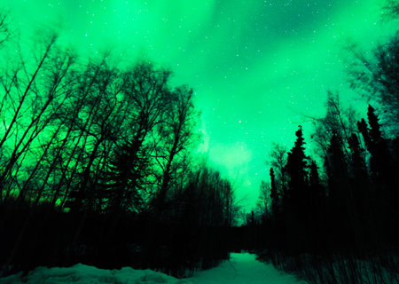 Active green Aurora Borealis in Alaska