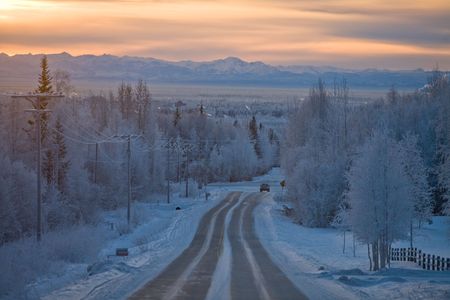 Winter Solstice in Fairbanks Alaska, at noon; view from above Musher's Hall looking south